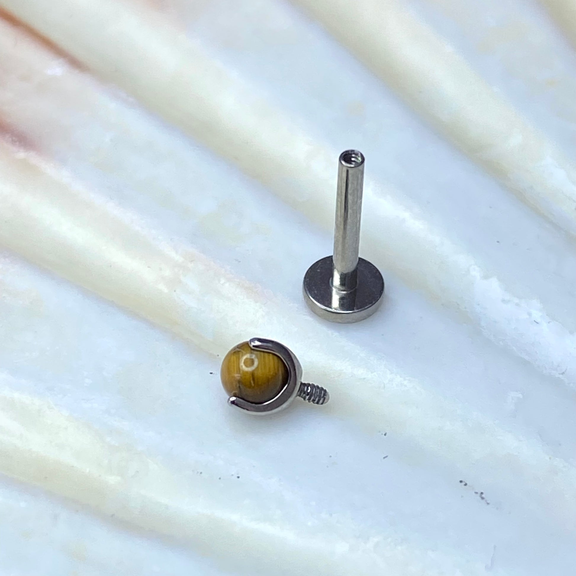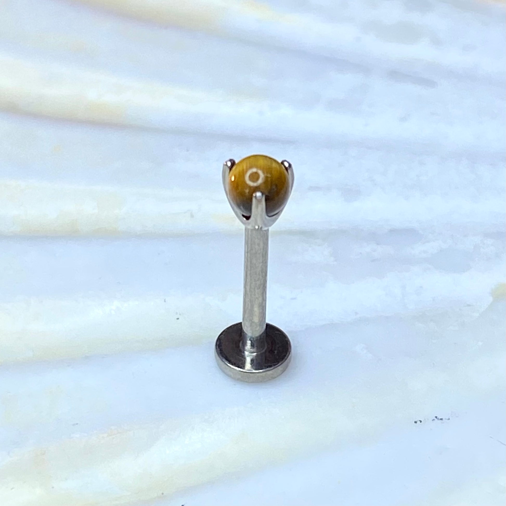 TIGER EYE Ball Top Medical grade Internal thread ASTM:F-136 titanium Labret, 1.2x6/8mm lobe helix cartilage tragus piercing jewellery