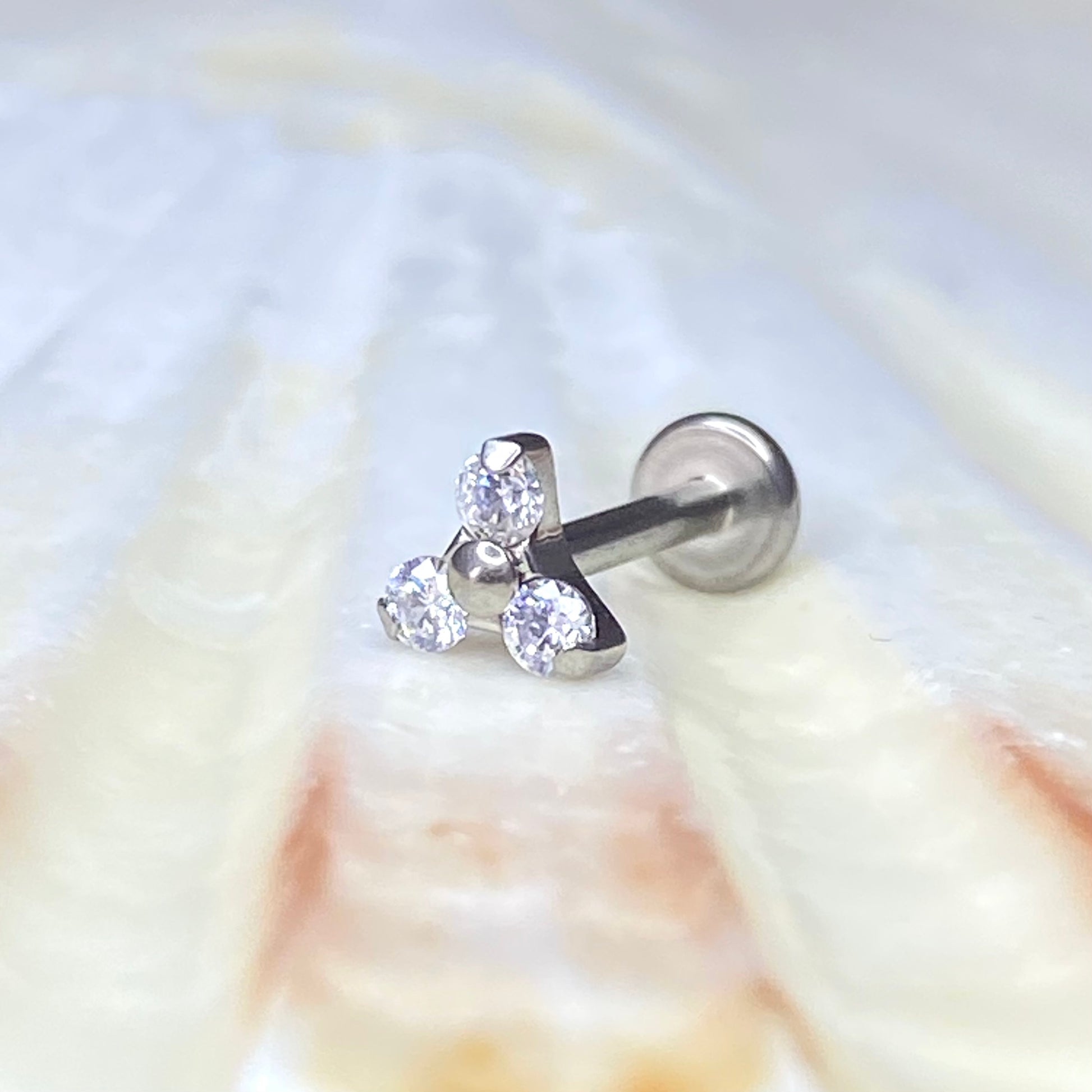 TRINITY CLEAR Gem Top Medical Grade ASTM F136 Titanium Internal Thread Labret Ear Jewellery Helix Tragus Cartilage Earring