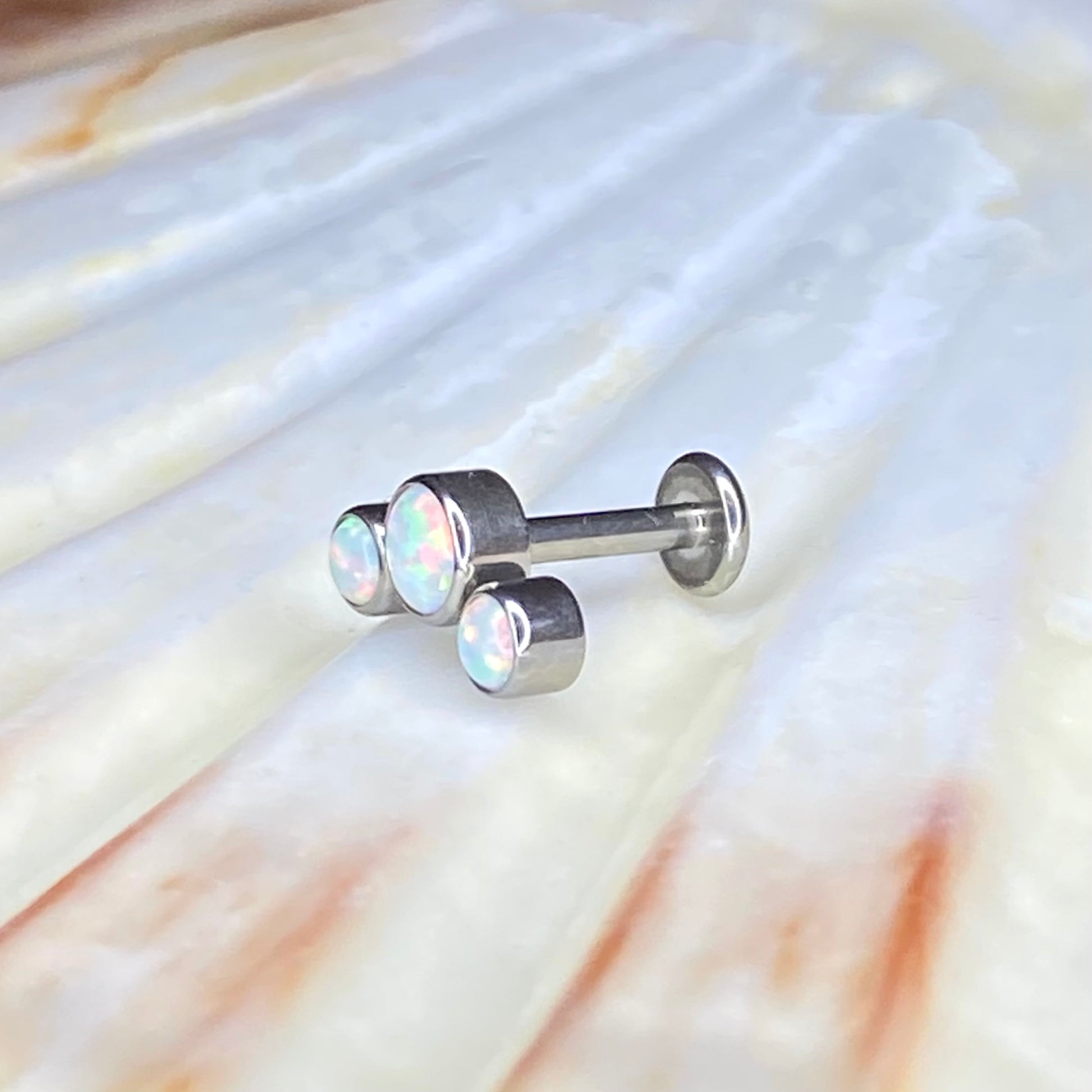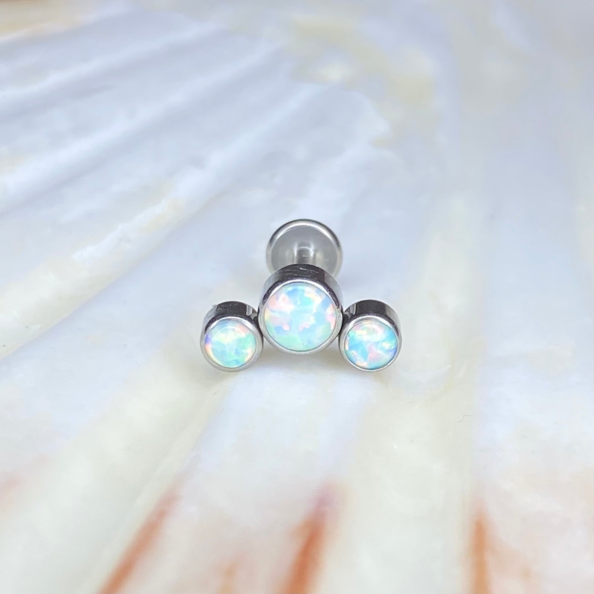 WHITE OPAL TRIPLE Gem Cluster Top Medical Grade ASTM F136 Titanium Internal Thread Labret Ear Jewellery Helix Tragus Lobe Cartilage Earring 1.2x6mm